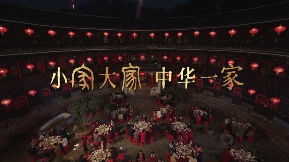 影片的結(jié)束語(yǔ)是點(diǎn)睛之筆:“我們相稱(chēng)相謂,只因相愛(ài)相親。小家大家,中華一家。” 使用了金文、篆書(shū)、楷體三種不同時(shí)期的字體展現(xiàn)一句話(huà)里的三個(gè)“家”字,巧妙地把數(shù)千年來(lái)中華傳統(tǒng)文化中“家文化”的源遠(yuǎn)流長(zhǎng)、傳承至今之意蘊(yùn)含其中,將家的形式與家的內(nèi)涵完美地融合在一起,既表達(dá)了中國(guó)人對(duì)家的眷戀與倚賴(lài),也體現(xiàn)了對(duì)中華大家庭的熱愛(ài)與自豪。