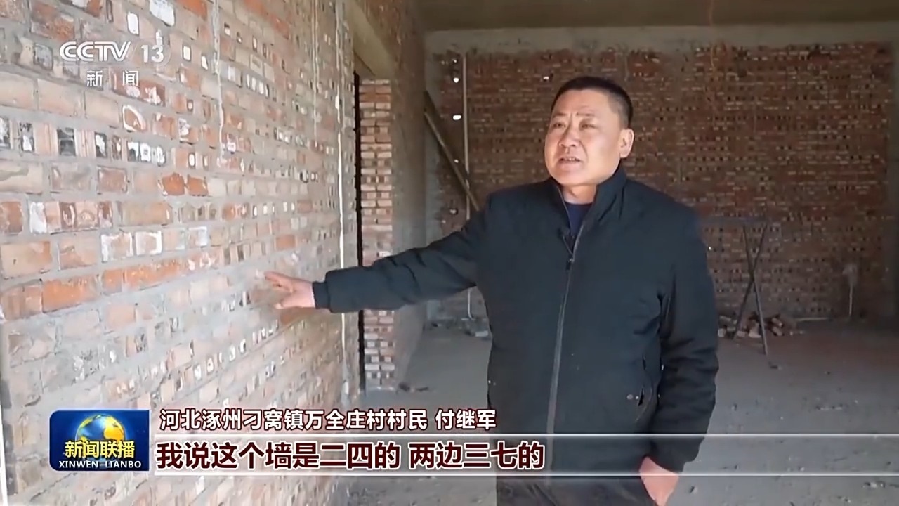 河北涿州刁窩鎮(zhèn)萬全莊村村民 付繼軍:去年,總書記來那會兒這個房子剛壘墻壘到這個位置,總書記還這么摸了摸,說這活兒干得挺好,問了問我這是三七墻呀二四墻呀,我說這個墻是二四的,兩邊三七的,看著總書記特別溫暖,那會兒真是掉眼淚。準備抓緊裝修,盡快搬進來,村里邊現在大家也都干勁挺大的,盡最大努力,把日子過好。