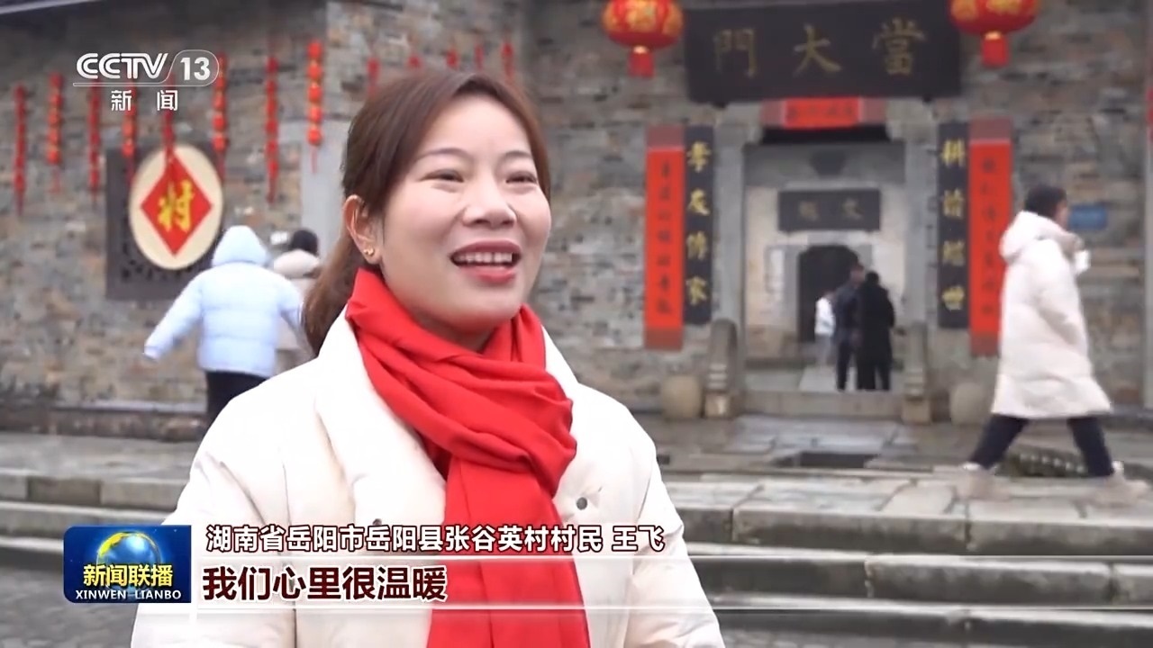 湖南省岳陽(yáng)市岳陽(yáng)縣張谷英村村民 王飛:總書記關(guān)心我們基層群眾年過(guò)得好不好,我們心里很溫暖,現(xiàn)在游客都愿意來(lái),感受我們村的古韻和文化。對(duì)于來(lái)年的日子,我們大家都充滿信心,把日子過(guò)得更好。