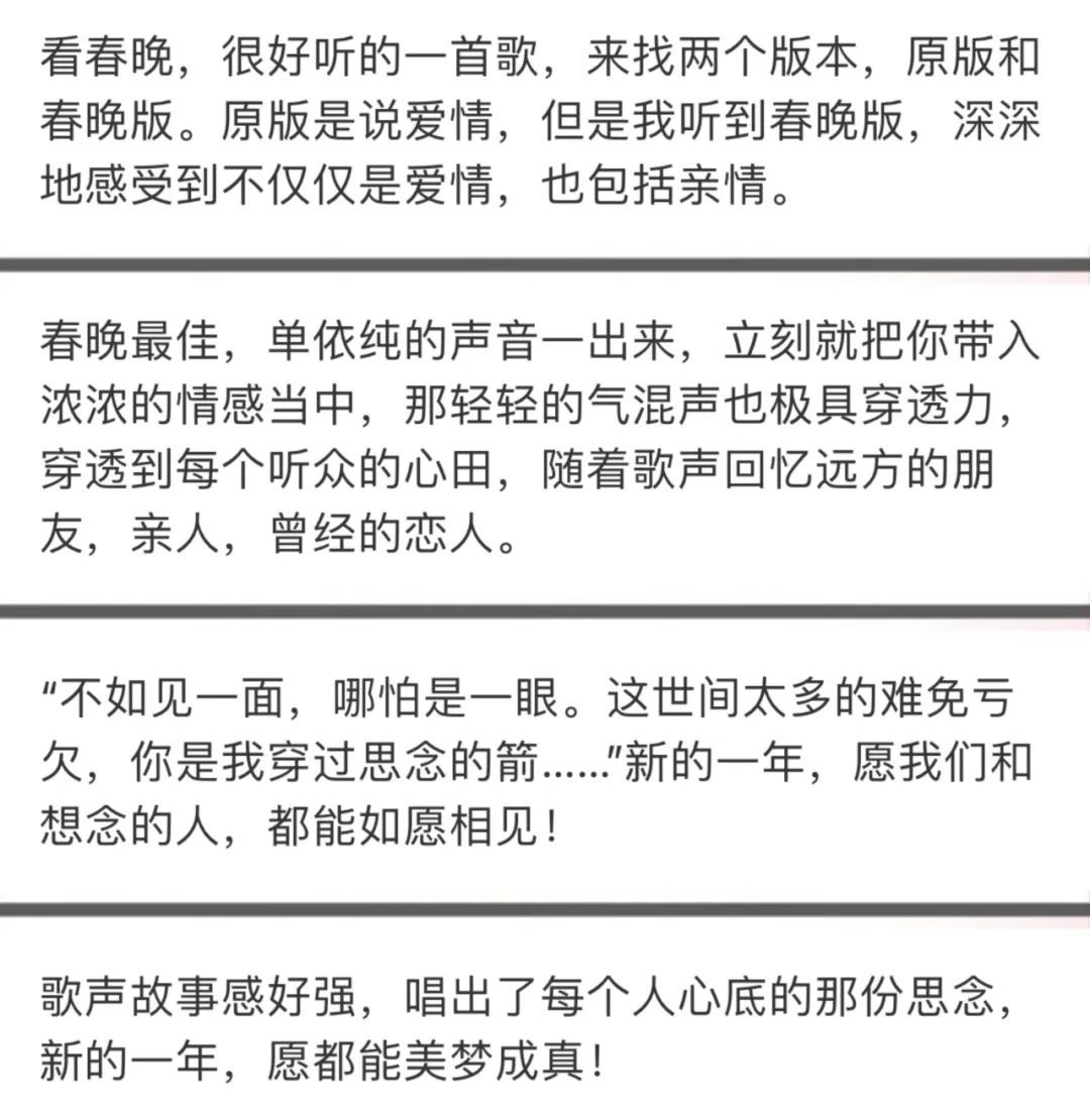 這首《不如見一面》迅速沖上各大音樂平臺的熱搜榜首位,“從春晚來的”網(wǎng)友涌進(jìn)評論區(qū),書寫起自己的故事。一首氣質(zhì)凄美的歌,為何能如此抓人,讓人忍不住反復(fù)“單曲循環(huán)”?