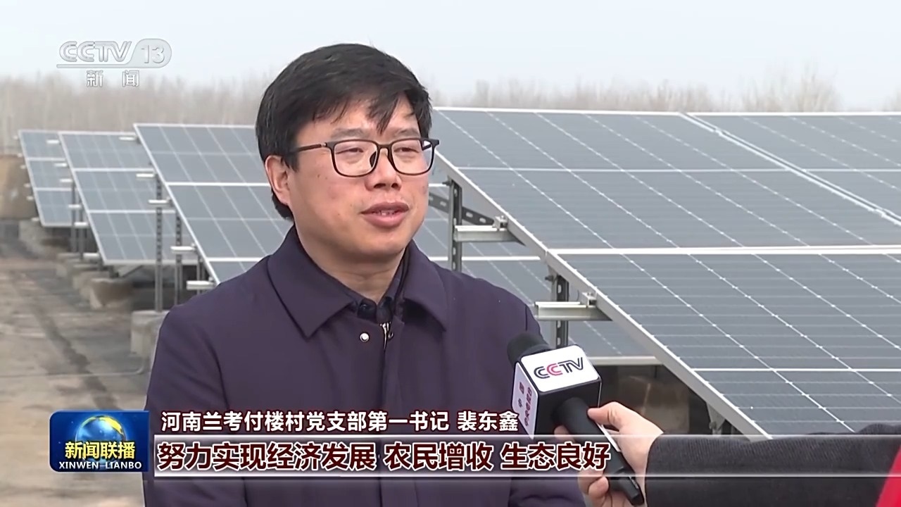 河南蘭考付樓村黨支部第一書記 裴東鑫:習(xí)近平總書記要我們在綠色發(fā)展中,努力實現(xiàn)經(jīng)濟發(fā)展、農(nóng)民增收、生態(tài)良好。我們大力實施了整個村莊的零碳化改造?,F(xiàn)在我們?nèi)迥旯夥l(fā)電量超過120萬度,完全滿足我們整個村子的用電需求,我們村集體一年增收十幾萬元。