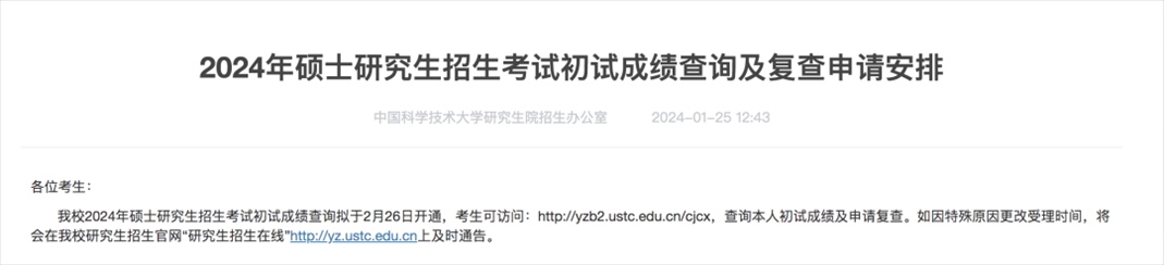 中國科學(xué)技術(shù)大學(xué)考研初試成績查詢