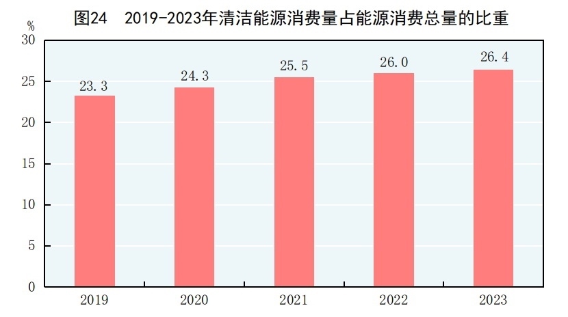 綠色低碳轉(zhuǎn)型深入推進(jìn)。全年全國(guó)萬(wàn)元國(guó)內(nèi)生產(chǎn)總值二氧化碳排放[21]與上年持平。水電、核電、風(fēng)電、太陽(yáng)能發(fā)電等清潔能源發(fā)電量31906億千瓦時(shí),比上年增長(zhǎng)7.8%。在監(jiān)測(cè)的339個(gè)地級(jí)及以上城市中,空氣質(zhì)量達(dá)標(biāo)的城市占59.9%,未達(dá)標(biāo)的城市占40.1%。3641個(gè)國(guó)家地表水考核斷面中,水質(zhì)優(yōu)良(Ⅰ~Ⅲ類)斷面比例為89.4%,Ⅳ類斷面比例為8.4%,Ⅴ類斷面比例為1.5%,劣Ⅴ類斷面比例為0.7%。