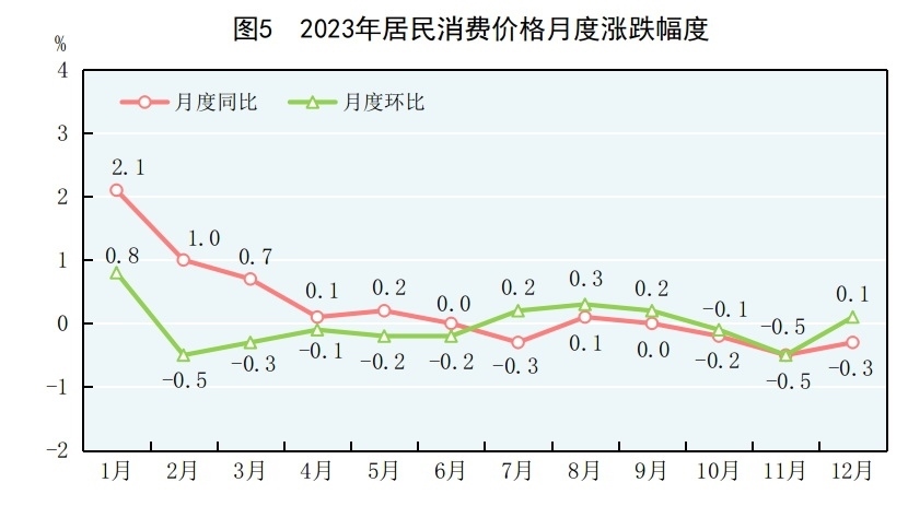 全年居民消費(fèi)價(jià)格比上年上漲0.2%。工業(yè)生產(chǎn)者出廠價(jià)格下降3.0%。工業(yè)生產(chǎn)者購(gòu)進(jìn)價(jià)格下降3.6%。農(nóng)產(chǎn)品生產(chǎn)者價(jià)格[9]下降2.3%。12月份,70個(gè)大中城市中,新建商品住宅銷售價(jià)格同比上漲的城市個(gè)數(shù)為20個(gè),持平的為2個(gè),下降的為48個(gè);二手住宅銷售價(jià)格同比上漲的城市個(gè)數(shù)為1個(gè),下降的為69個(gè)。