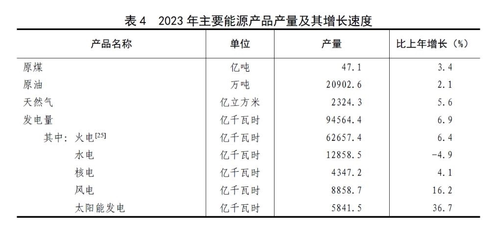 初步核算,全年一次能源生產(chǎn)總量48.3億噸標(biāo)準(zhǔn)煤,比上年增長(zhǎng)4.2%。