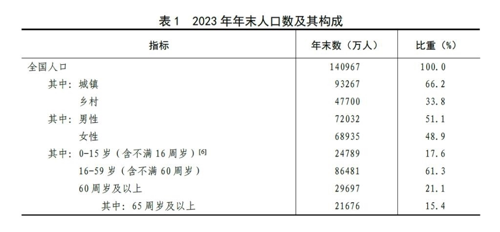 [6]2023年年末,0-14歲(含不滿15周歲)人口為23063萬(wàn)人,15-59歲(含不滿60周歲)人口為88207萬(wàn)人。