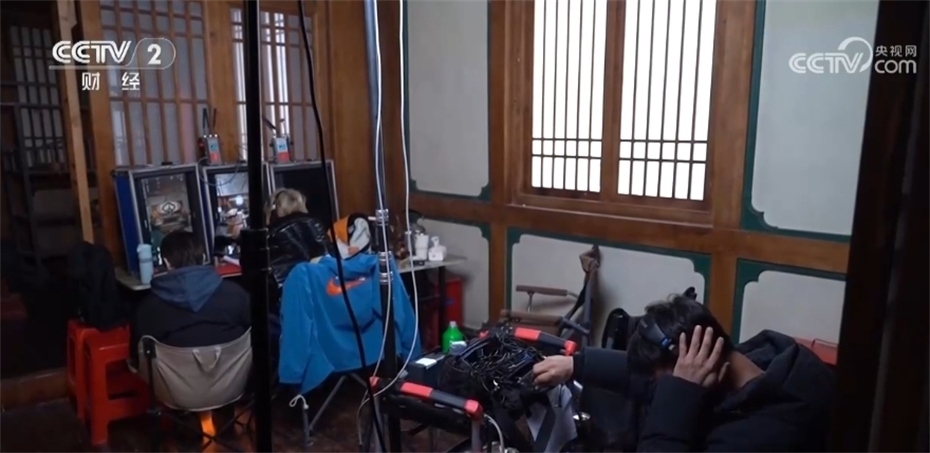在橫店影視城這棟大樓里,一個微短劇劇組正在加緊拍攝,燈光、攝影、滑軌,專業(yè)設(shè)備通通就位,講戲、對詞、走位,演員全情投入。