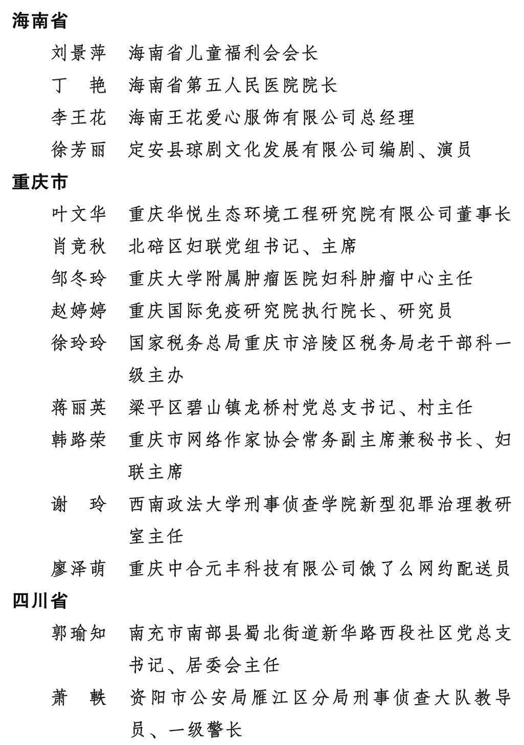 央視網(wǎng)消息:據(jù)中國婦女網(wǎng)3月3日消息,為表彰先進、樹立典型,進一步引領(lǐng)激勵廣大婦女跟黨奮進新征程、巾幗建功新時代,全國婦聯(lián)決定,授予黃會林等10人全國三八紅旗手標兵稱號,授予王殊等300人全國三八紅旗手稱號,授予清華大學附屬小學等200個單位全國三八紅旗集體稱號。