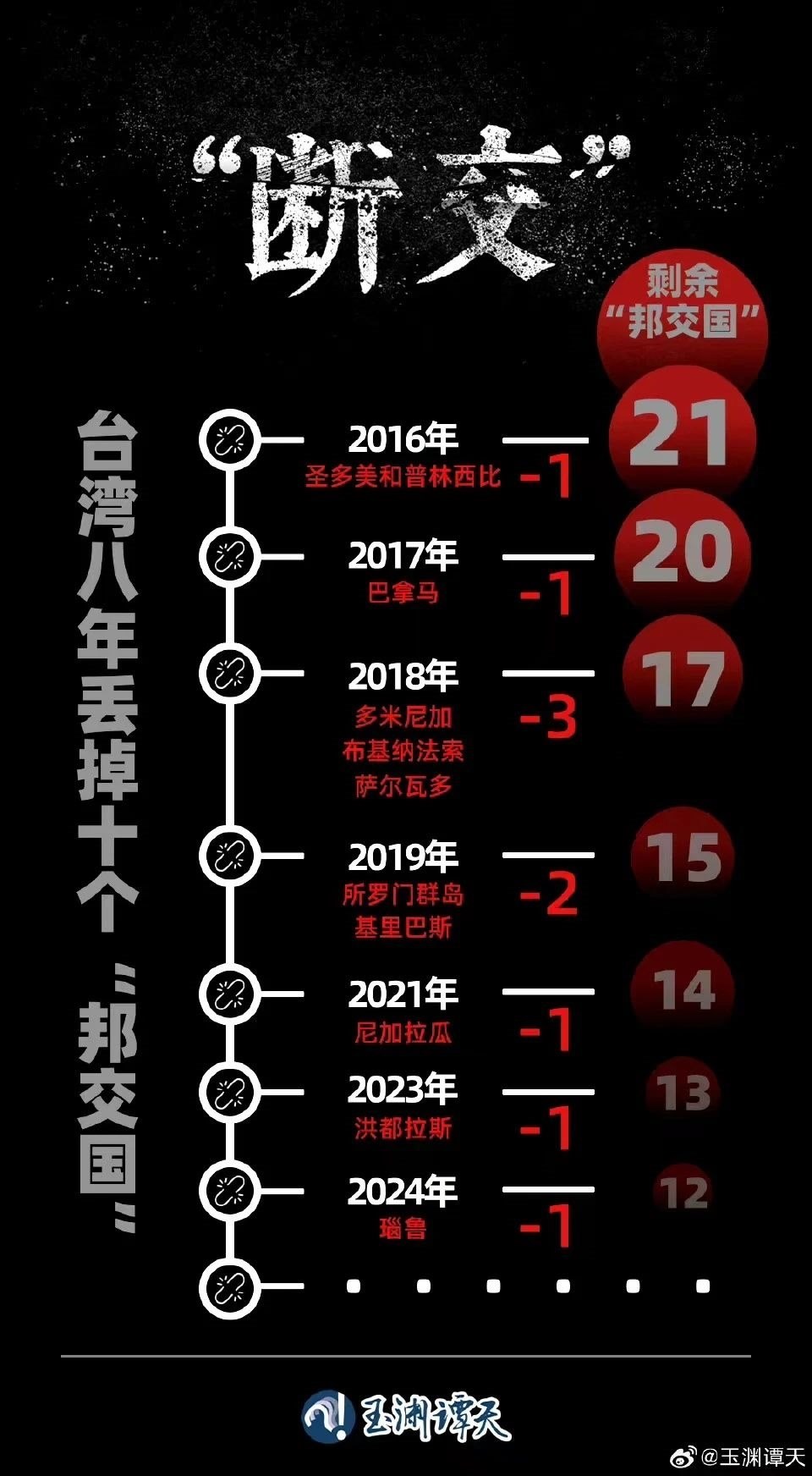 這一輪“斷交”,有一個(gè)突出特點(diǎn),臺(tái)灣當(dāng)局所謂重要的“邦交國”全部與其斷交。