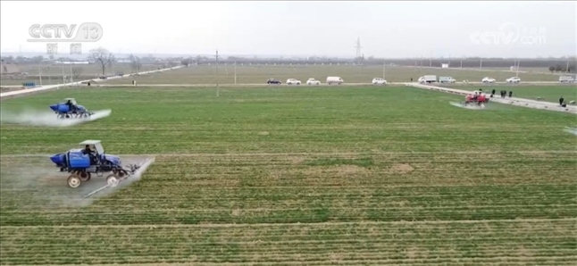 而在陜西咸陽(yáng)涇陽(yáng)縣,當(dāng)?shù)亟M織專業(yè)機(jī)防隊(duì),對(duì)全縣的29.1萬(wàn)畝小麥進(jìn)行除草作業(yè),機(jī)手們操控著無(wú)人機(jī)在麥田上方來(lái)回折返。
