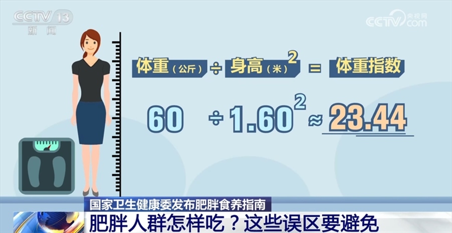 生活中,一些體重正常的人為了追求身材苗條盲目減肥。其實醫(yī)學(xué)上對肥胖有明確的衡量標(biāo)準(zhǔn)——體重指數(shù)。它是基于身高和體重而計算出的指標(biāo),體重指數(shù)等于(=)體重(公斤)除以身高(米)的平方得出的數(shù)字。例如一位女性,體重60公斤,身高1.60米,她的體重指數(shù)是23.44。