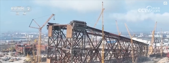 固定式導(dǎo)管架平臺是海洋油氣開發(fā)的關(guān)鍵裝備,由水下導(dǎo)管架、樁腿和水上的生產(chǎn)模塊三部分組成。導(dǎo)管架作為“地基”,支撐著整個(gè)海上油氣平臺的穩(wěn)定與安全?!昂;枴睂?dǎo)管架總高338.5米,總重達(dá)37000噸,用鋼量接近“鳥巢”國家體育場。由于其所處海域臺風(fēng)頻發(fā),風(fēng)浪及內(nèi)波流極為強(qiáng)烈,因此,該導(dǎo)管架是按照百年一遇的惡劣海況進(jìn)行設(shè)計(jì)。
