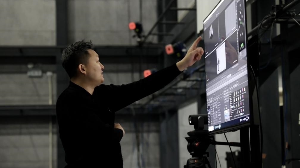 “這是動作數(shù)字孿生,利用光學(xué)動捕技術(shù),棚內(nèi)多個(gè)專業(yè)攝像頭捕捉演員身上的特定標(biāo)記,以毫秒級的速率計(jì)算出角色的運(yùn)動軌跡,然后將數(shù)據(jù)傳送到電腦上,實(shí)現(xiàn)虛擬人物的動作?!眹覄勇@公共技術(shù)服務(wù)平臺動捕棚的技術(shù)顧問崔盛輯向記者介紹道。
