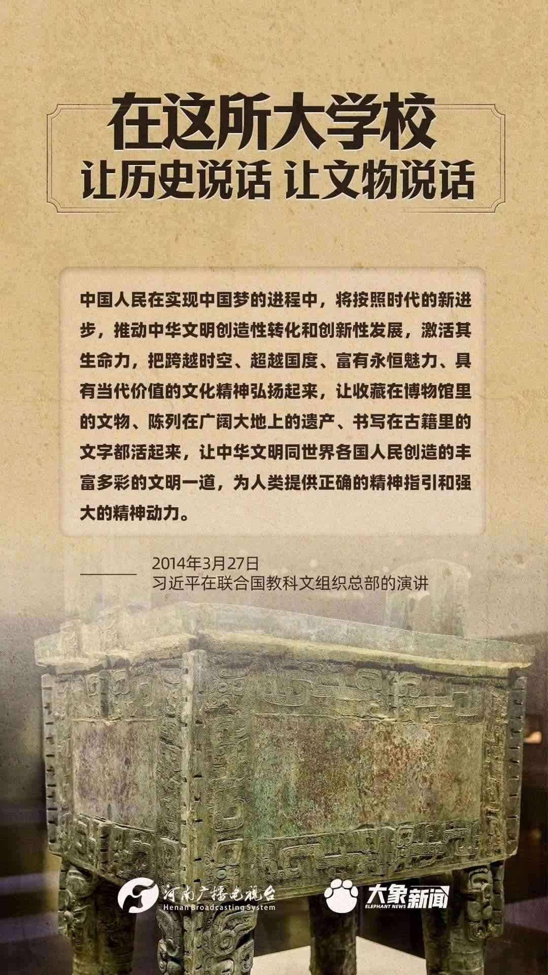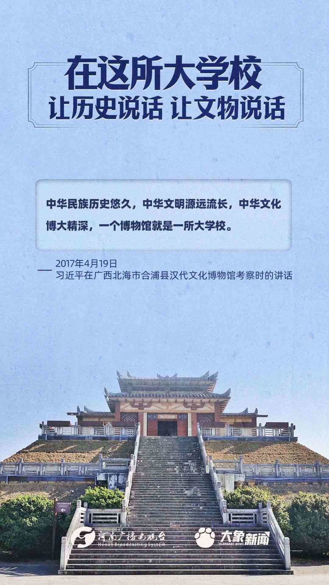 習(xí)近平總書記一直高度重視博物館工作,多次作出重要講話,強(qiáng)調(diào)“一個博物院就是一所大學(xué)校”,指出“讓歷史說話,讓文物說話”,要求“守護(hù)好、傳承好、展示好中華文明優(yōu)秀成果”等等,金句連連。大象新聞進(jìn)行了認(rèn)真梳理,邀您一起學(xué)習(xí)。