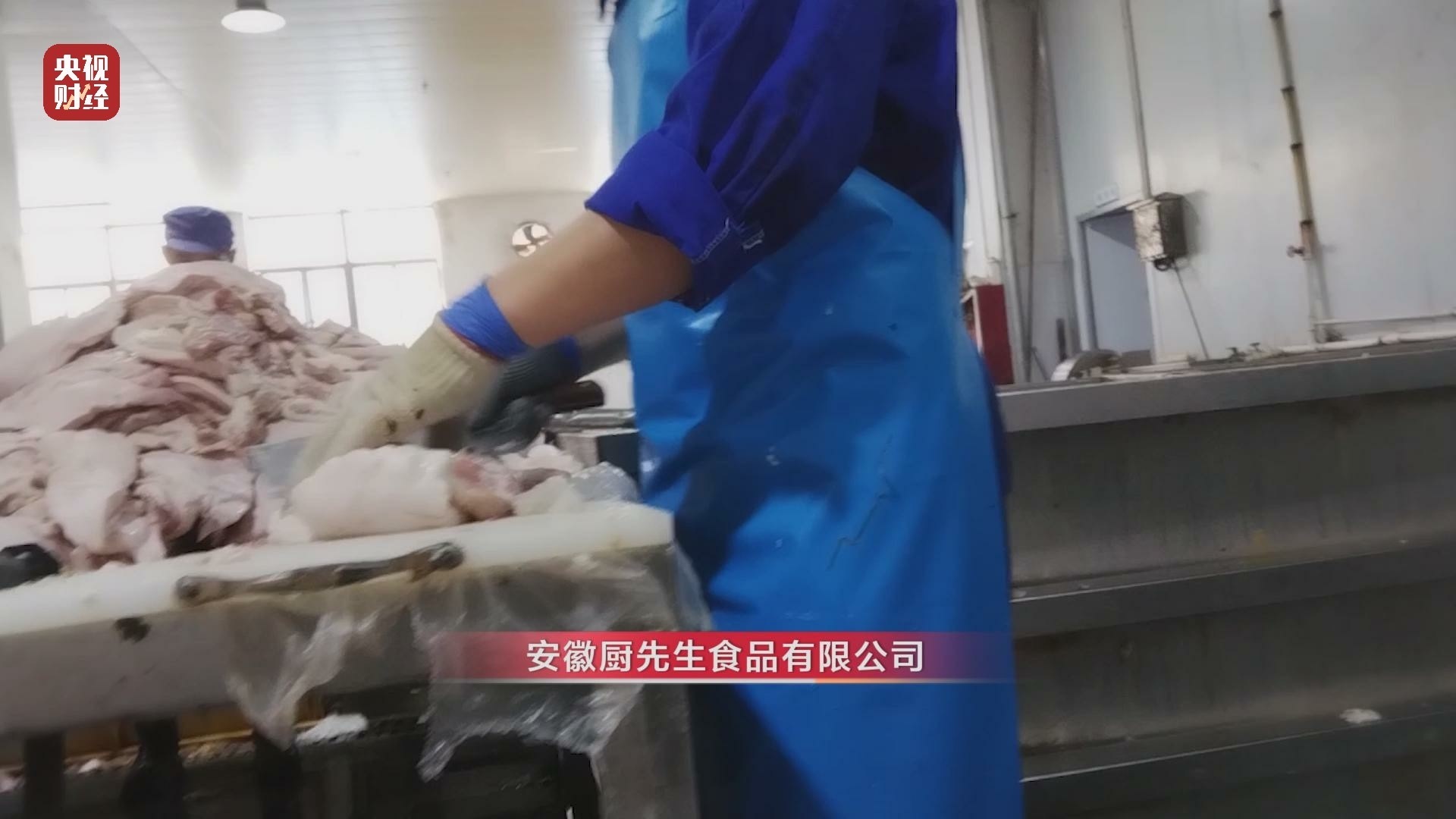 安徽廚先生食品有限公司 工作人員:還是會留一些腺體,上面不留一點(diǎn)腺體,底下紅肉就被修掉了。