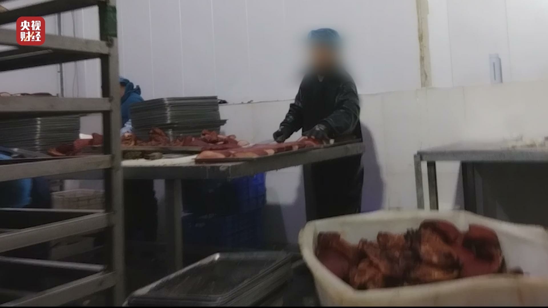 這是肉類加工車間通往分割包裝車間的通道,在這條長長的通道兩旁的貨架上,擺滿了剛剛使用帶著腺體的劣質(zhì)槽頭肉加工好的熟肉制品。