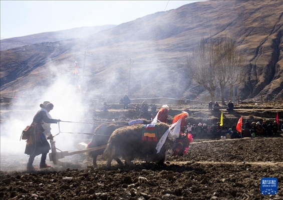 這是3月16日拍攝的西藏山南市瓊結(jié)縣加麻鄉(xiāng)加麻村的春耕儀式現(xiàn)場。新華社記者 旦增尼瑪曲珠 攝