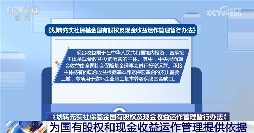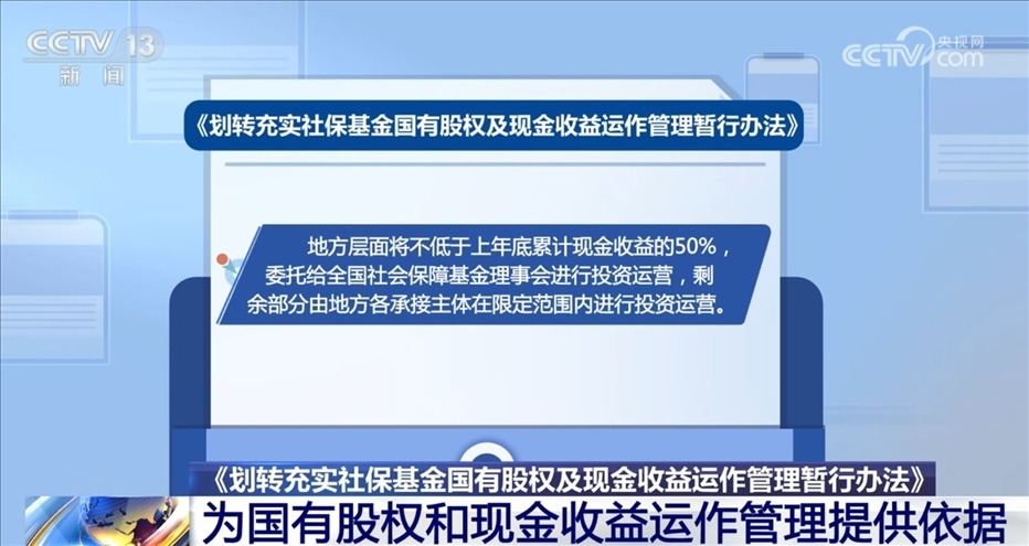 央視網(wǎng)消息:近日,財(cái)政部、人力資源社會(huì)保障部、國務(wù)院國資委三部門聯(lián)合印發(fā)了《劃轉(zhuǎn)充實(shí)社?;饑泄蓹?quán)及現(xiàn)金收益運(yùn)作管理暫行辦法》(以下簡(jiǎn)稱《辦法》)。《辦法》為承接主體開展國有股權(quán)和現(xiàn)金收益運(yùn)作管理提供了依據(jù)。