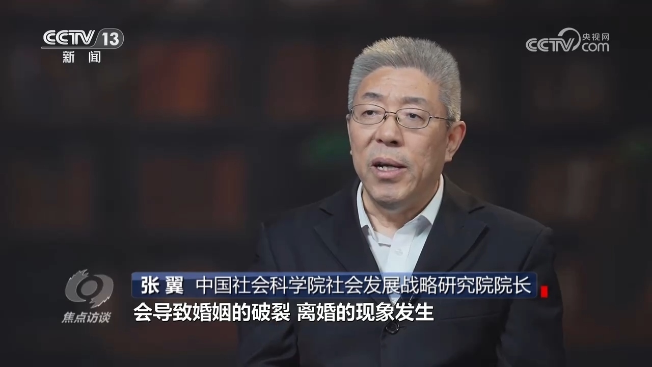 中國社科院社會發(fā)展戰(zhàn)略研究院院長張翼:“增加夫妻雙方的矛盾以后,會導致婚姻破裂、離婚現(xiàn)象發(fā)生,導致離婚率居高不下;第二,往往導致兩個親家之間互不往來,原來存在的家庭網(wǎng)斷裂了?!?