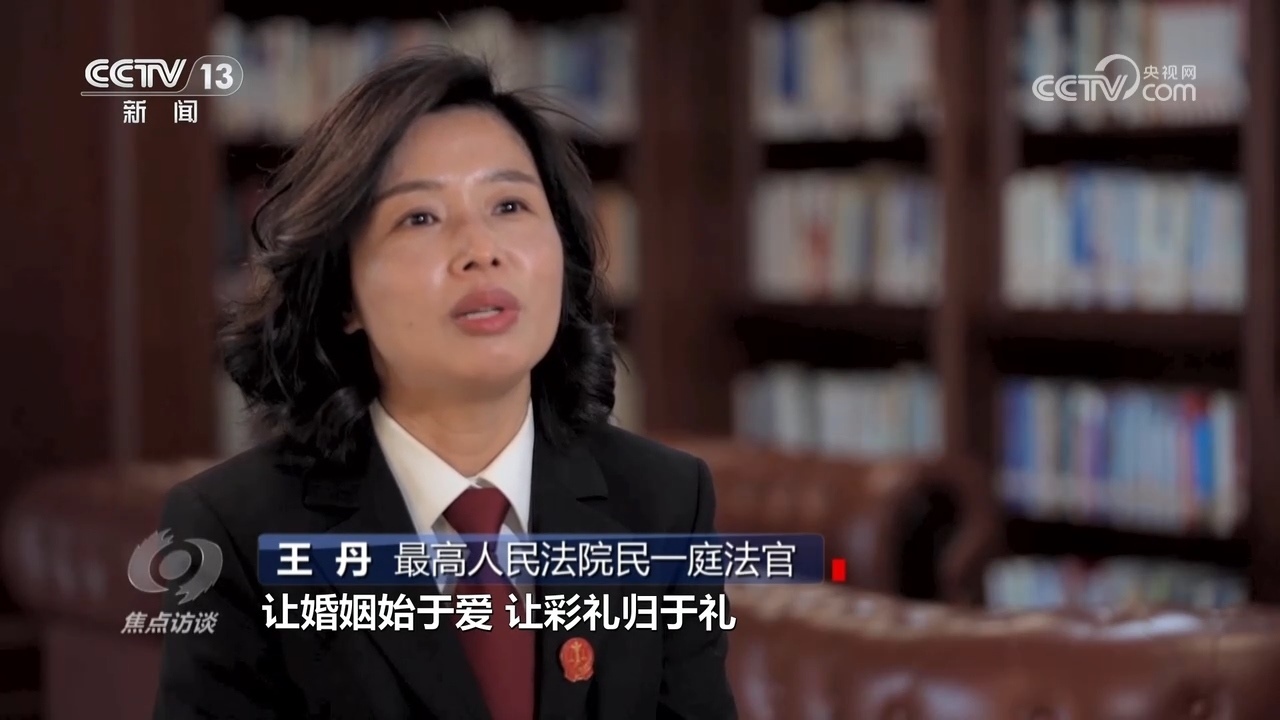 最高人民法院民一庭法官王丹:“讓婚姻始于愛,讓彩禮歸于禮。一個婚姻,最重要的還是感情基礎,雙方的價值觀。所以彩禮數(shù)額高低,既不能體現(xiàn)出感情,也不能體現(xiàn)出重要程度。高額彩禮不僅讓婚姻埋下了隱患,而且會物化自己的子女。高彩禮不是面子,而是傷害自己子女的一把隱形的劍?!?/p>