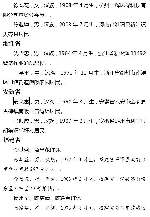 上榜勇士中,有舍棄價值幾十萬元蟹籠海中救人的沈華忠;有在深水中連救兩人的花甲老人程國利;有在斷橋處攔車避免更多事故發(fā)生的黃福林、唐群輝、王國梁群體;有阻止兇犯持刀行兇的醫(yī)生單國際、韋仲謀;有從15米高的橋上跳水救人的外賣小哥陳迎博……更有在水中多次救人英勇犧牲的19歲小伙李政;為搶險救火獻(xiàn)出生命的鄧璞、項姚興、吳祥奇;有進(jìn)入沼氣井救人不幸遇難的張生賢……勇士們的事跡震撼人心、催人奮進(jìn),他們不怕困難和艱險,沖鋒在前、見義勇為,用實際行動傳承和弘揚了中華民族傳統(tǒng)美德,踐行了社會主義核心價值觀。