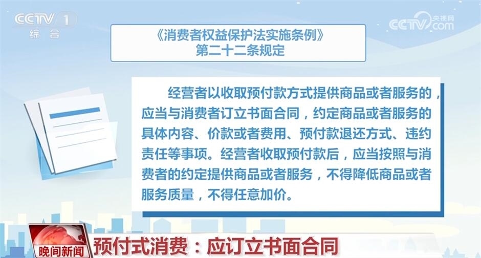 《消費者權益保護法實施條例》第二十二條規(guī)定,經營者以收取預付款方式提供商品或者服務的,應當與消費者訂立書面合同,約定商品或者服務的具體內容、價款或者費用、預付款退還方式、違約責任等事項。經營者收取預付款后,應當按照與消費者的約定,提供商品或者服務,不得降低商品或者服務質量,不得任意加價。