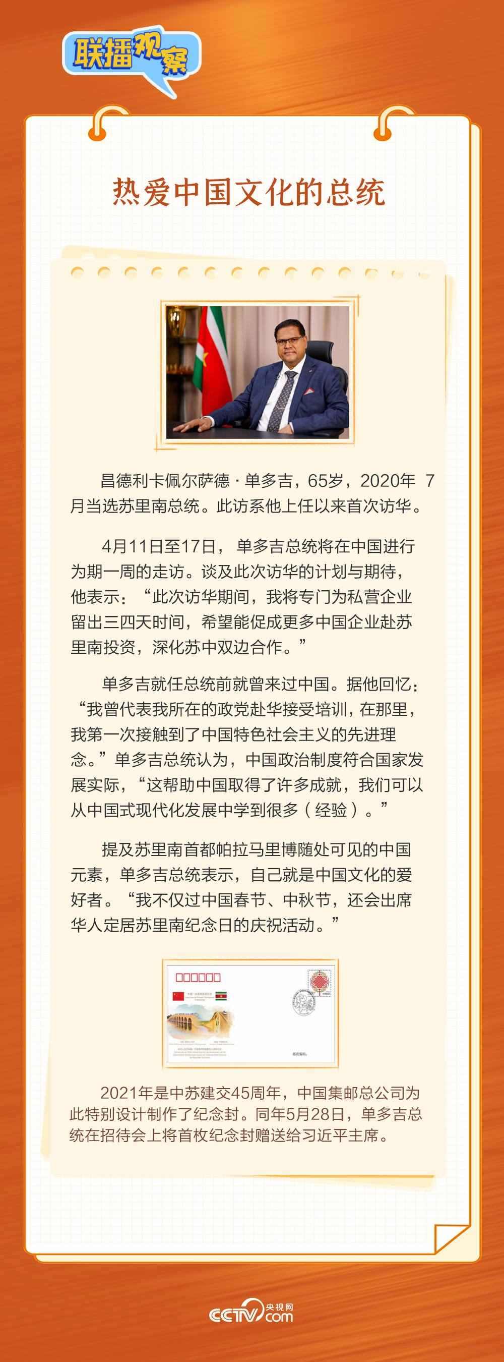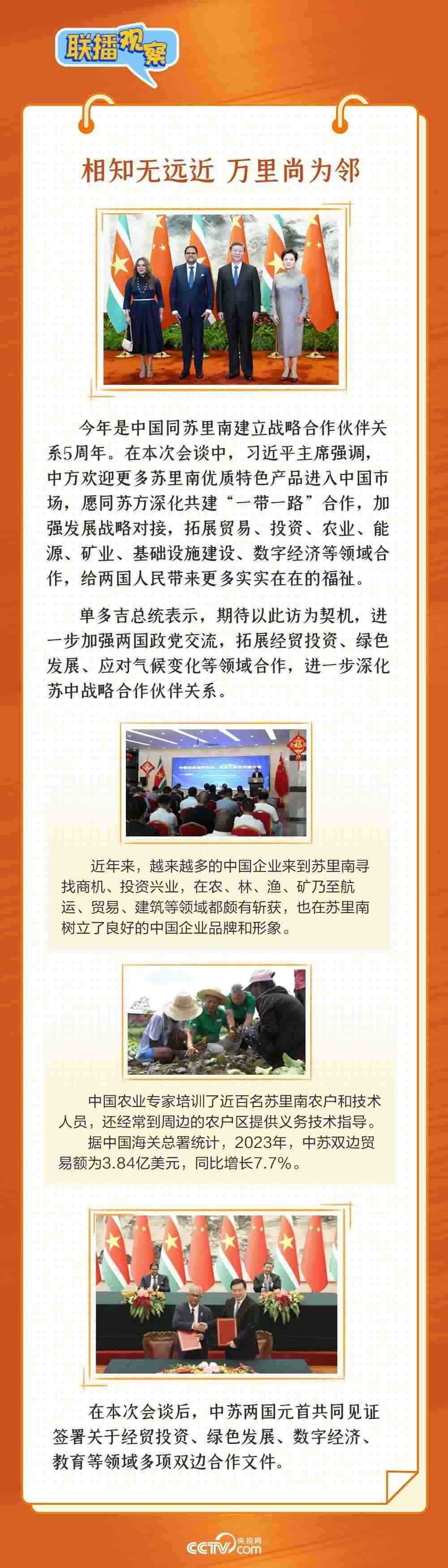 此訪是單多吉總統(tǒng)上任以來(lái)首次訪華,這次會(huì)談對(duì)兩國(guó)關(guān)系發(fā)展具有怎樣的重要意義?蘇里南又是怎樣的一個(gè)國(guó)度?《聯(lián)播觀察》邀您一同了解。