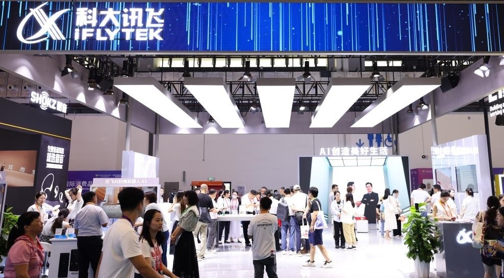 這是4月14日拍攝的第四屆消博會上的科大訊飛展臺。新華社記者 楊冠宇 攝
