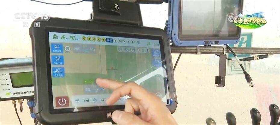 記者看到,播種機上有幾塊顯示屏,其中一塊顯示屏可以通過北斗導(dǎo)航對整個農(nóng)機的駕駛速度進行有效控制,能夠保證播下去的種子株間距更加均勻,而且還能夠準(zhǔn)確、不漏種。
