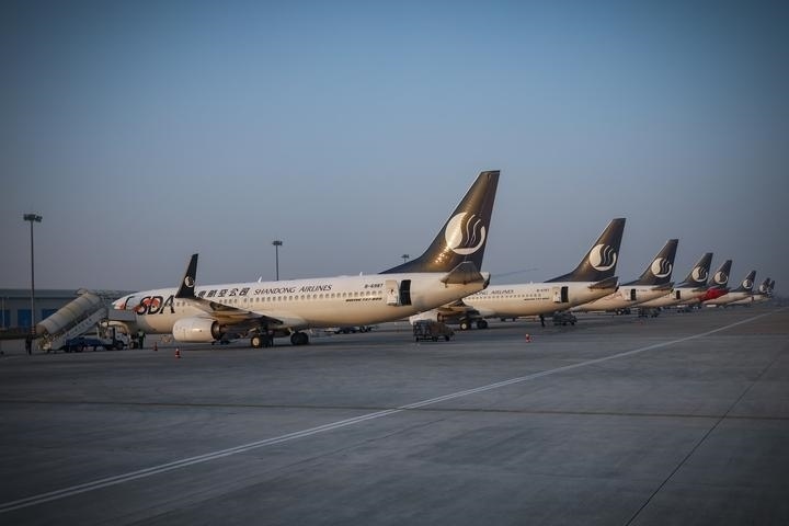 圖為山東航空在機(jī)場停靠的飛機(jī)。(山東航空供圖)