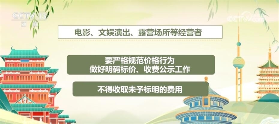 電影、文娛演出、露營場所等經(jīng)營者要嚴格規(guī)范價格行為,做好明碼標價、收費公示工作,不得收取未予標明的費用。