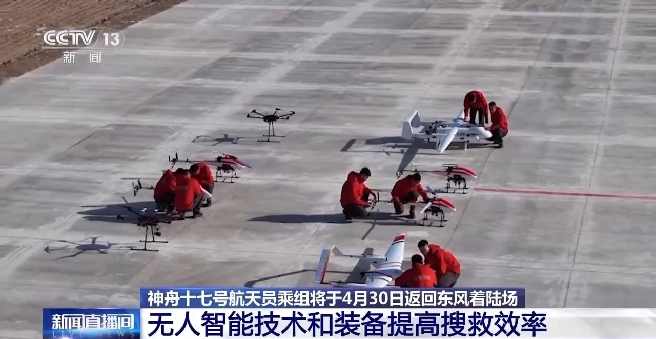 搜救回收任務(wù)的順利完成,離不開(kāi)高效、先進(jìn)的技術(shù)支持,從2021年神舟十二號(hào)搜救回收任務(wù)開(kāi)始,東風(fēng)著陸場(chǎng)就成立了一支依托無(wú)人智能先進(jìn)技術(shù)和裝備,對(duì)著陸場(chǎng)開(kāi)展空中目標(biāo)搜索、現(xiàn)場(chǎng)景象獲取、電磁環(huán)境監(jiān)測(cè)等任務(wù)的無(wú)人機(jī)分隊(duì),他們通過(guò)手中的飛機(jī),為搜救隊(duì)員插上騰飛的翅膀,將平安可靠送到航天員的身旁。