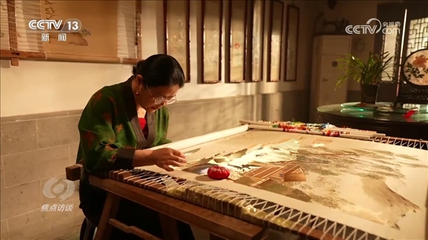 盧建英出生在一個(gè)蘇繡世家,傳到她這里已是第四代。多年前,盧建英也是這樣坐在繡繃前聽母親的教誨。