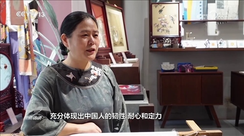 盧建英:“當(dāng)時(shí)我在繡一幅《桃花太平鳥圖》,習(xí)近平總書記走到了我的繃架前。他說你好,很親切,很和藹,看得非常仔細(xì)。他說中華文化的傳承力有多強(qiáng),通過這個(gè)蘇繡可以看出來,像這樣的功夫充分體現(xiàn)出中國人的韌性、耐心和定力,這是中華民族精神的一部分,能得到總書記的認(rèn)可,真的是倍感榮耀?!?/p>
