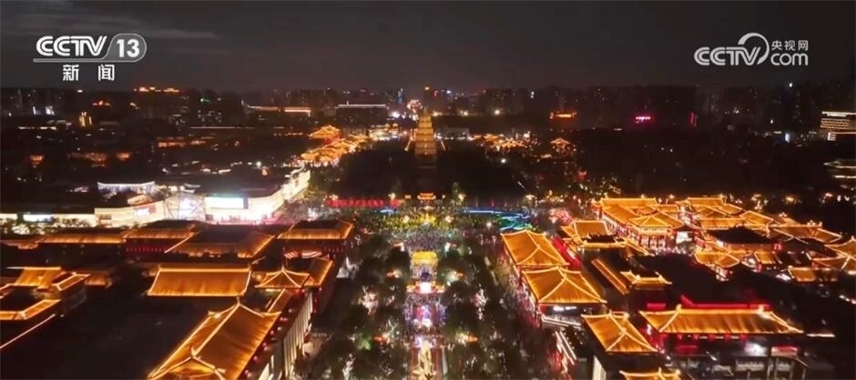 晚上10點的西安大唐不夜城,燈光璀璨、游人如織。
