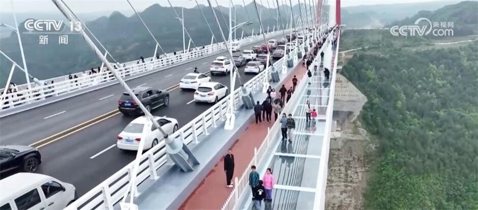除了一些名勝古跡,這個(gè)假期,許多地方的新景觀也成為人們打卡的熱門(mén)地。在貴州,剛剛通車(chē)不久的龍里河大橋吸引了不少游客。人們登上大橋,沿著玻璃步道,體驗(yàn)在云端漫步,領(lǐng)略山地峽谷的自然風(fēng)光,游客們紛紛拍照打卡。
