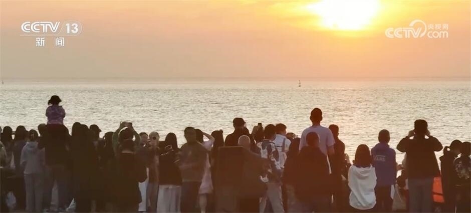 這兩天,浙江海鹽縣的觀海園吸引了來(lái)自全國(guó)各地的游客,共賞“最美日出”。凌晨五點(diǎn)多,晨曦微露,海鹽縣觀海園的魚(yú)鱗海塘邊,近萬(wàn)人靜靜守候,當(dāng)?shù)谝豢|陽(yáng)光刺破云層,游客們紛紛拿出手機(jī)、相機(jī)記錄下這動(dòng)人一刻。