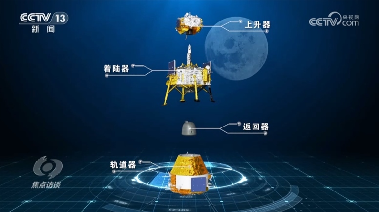 嫦娥六號探測器由4部分組成,分別是負(fù)責(zé)從月面起飛的上升器、承擔(dān)落月和采集任務(wù)的著陸器、將帶著月壤樣品再入地球的返回器以及承擔(dān)地月往返運(yùn)輸任務(wù)的軌道器。科研人員為嫦娥六號設(shè)計(jì)了11個(gè)階段的飛行任務(wù),每個(gè)階段都環(huán)環(huán)相扣。