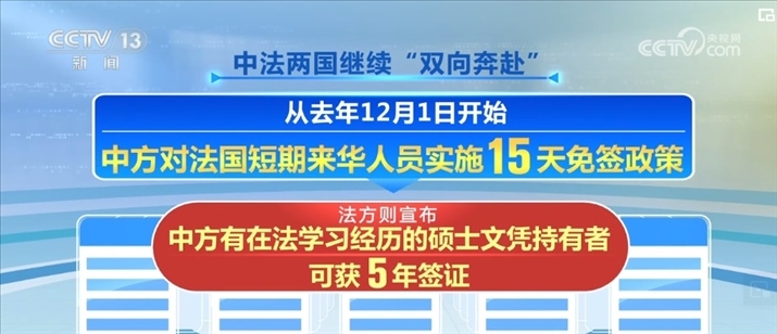在中法文化旅游年之際,中法兩國(guó)繼續(xù)“雙向奔赴”。從2023年12月1日開始,中方對(duì)法國(guó)短期來(lái)華人員實(shí)施15天免簽政策,法方則宣布,中方有在法學(xué)習(xí)經(jīng)歷的碩士文憑持有者可獲5年簽證。