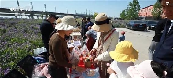 一年前,這里還是一片工地遺留的建筑渣土。當(dāng)?shù)嘏c科研團(tuán)隊(duì)合作,引進(jìn)營(yíng)養(yǎng)土技術(shù),一年內(nèi)就將撂荒地變成了“桃花源”?;ê_呥€擺起了創(chuàng)意市集,結(jié)合“花”元素的花餑餑、非遺農(nóng)民畫和黑陶工藝品,吸引了不少游客消費(fèi)。