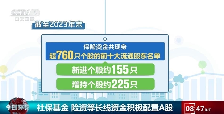 央視網(wǎng)消息:A股2023年年報(bào)日前披露結(jié)束,上市公司的前十大流通股東情況顯示,包括社?;?、保險(xiǎn)資金、合格境外機(jī)構(gòu)投資者等在內(nèi)的長(zhǎng)線資金入市步伐正在不斷加快,A股中長(zhǎng)期投資力量不斷壯大。