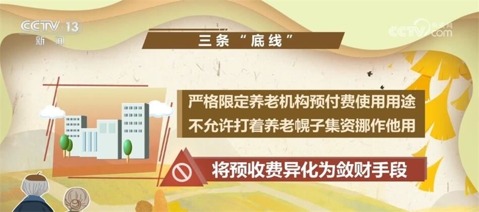 發(fā)布會(huì)上,民政部相關(guān)負(fù)責(zé)人介紹,《意見(jiàn)》還明確了三條安全“底線(xiàn)”:第一條是嚴(yán)禁養(yǎng)老機(jī)構(gòu)超過(guò)床位供給能力“一床多賣(mài)”;第二條是嚴(yán)格限定養(yǎng)老機(jī)構(gòu)預(yù)付費(fèi)使用用途,不允許打著養(yǎng)老幌子集資挪作他用,將預(yù)收費(fèi)異化為斂財(cái)手段;第三條是明確不得以承諾還本付息、給予其他投資回報(bào)等方式,誘導(dǎo)老年人及家屬交費(fèi),這是典型的非法集資行為。