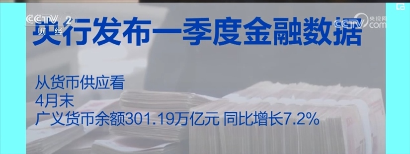 央行數據顯示,從貨幣供應看,4月末,廣義貨幣余額301.19萬億元,同比增長7.2%。