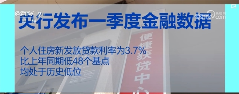 從貸款利率看,4月份,企業(yè)新發(fā)放貸款加權平均利率為3.76%,比上年同期低23個基點;個人住房新發(fā)放貸款利率為3.7%,比上年同期低48個基點,均處于歷史低位。