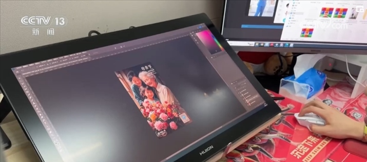 AI畫師鄧博正在設(shè)計一幅母親節(jié)的主題海報。如果使用傳統(tǒng)手繪加圖片編輯方式,這樣一張海報鄧博至少要做上兩到三天。不過現(xiàn)在,使用AI進(jìn)行輔助生成,從接到需求到交付出多張不同風(fēng)格的高質(zhì)量海報,鄧博只用了不到10分鐘的時間。