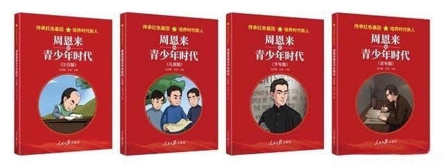 根據(jù)中共中央辦公廳印發(fā)的《關(guān)于推動(dòng)黨史學(xué)習(xí)教育常態(tài)化長(zhǎng)效化的意見(jiàn)》,以及教育部辦公廳印發(fā)的《關(guān)于在思政課中加強(qiáng)以黨史教育為重點(diǎn)的“四史”教育的通知》,2020年,在人民日?qǐng)?bào)社副總編輯方江山的策劃和支持下,出版社約請(qǐng)時(shí)任中國(guó)社會(huì)科學(xué)院近代史所黨委書(shū)記金民卿和周恩來(lái)侄外孫、北京大鸞翔宇慈善基金會(huì)理事長(zhǎng)沈清,主編“傳承紅色基因,培養(yǎng)時(shí)代新人”叢書(shū)。該叢書(shū)首批圖書(shū)包括《毛澤東的青少年時(shí)代》《周恩來(lái)的青少年時(shí)代》,書(shū)中截取了毛澤東、周恩來(lái)青少年時(shí)期的光輝片段,講述其成長(zhǎng)、學(xué)習(xí)經(jīng)歷和積極投身革命的艱辛歷程。同時(shí),考慮到不同年齡段學(xué)生的閱讀水平,又將圖書(shū)分為注音版、兒童版、少年版、青年版四個(gè)版本,用青少年喜聞樂(lè)見(jiàn)的方式,采取圖文并茂的形式,引導(dǎo)廣大青少年從小在心里深植紅色基因,樹(shù)立紅色理想。
