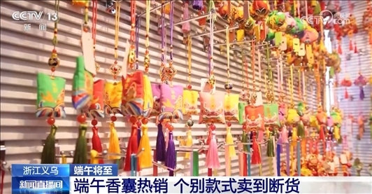 端午節(jié)人們還有佩戴香囊的習慣,來祈求平安健康。義烏市場上的香囊也同樣銷售火熱,個別款甚至已經脫銷。