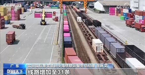 鹽田國際集裝箱碼頭海鐵聯(lián)運(yùn)服務(wù)總經(jīng)理余秋文介紹:“截至今年4月份,我們共開通了14個海鐵聯(lián)運(yùn)內(nèi)陸港,線路增加至31條,覆蓋了大灣區(qū)、華中、西南等重要的經(jīng)濟(jì)區(qū)域。”