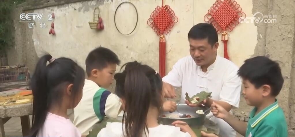 在河南南陽黃臺崗鎮(zhèn)一處農(nóng)家小院里,孩子們正圍坐在圓桌旁,跟大人們一起學著制槲包。和其他地方用葦葉不同,這里的粽子用的是當?shù)靥赜械拈螛涞娜~子,不僅防腐,而且味道清香,相較于傳統(tǒng)的錐型粽,槲包呈長方形,吃起來也別有風味。