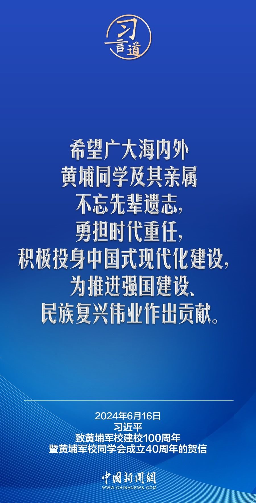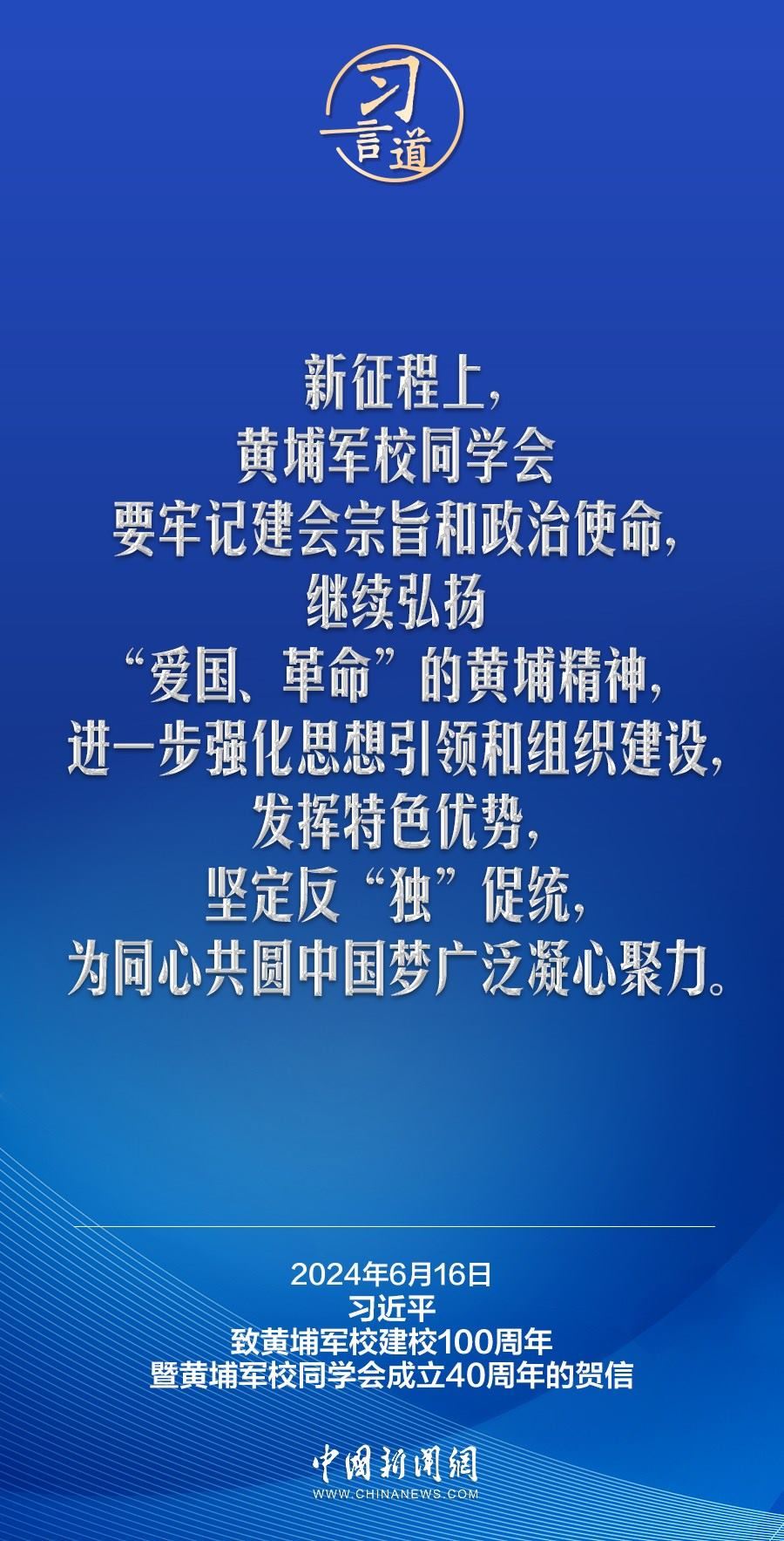在黃埔軍校建校100周年暨黃埔軍校同學會成立40周年之際,中共中央總書記、國家主席、中央軍委主席習近平發(fā)來賀信,代表中共中央向黃埔軍校同學會表示熱烈祝賀,向廣大海內外黃埔同學及其親屬致以誠摯問候。習近平指出——